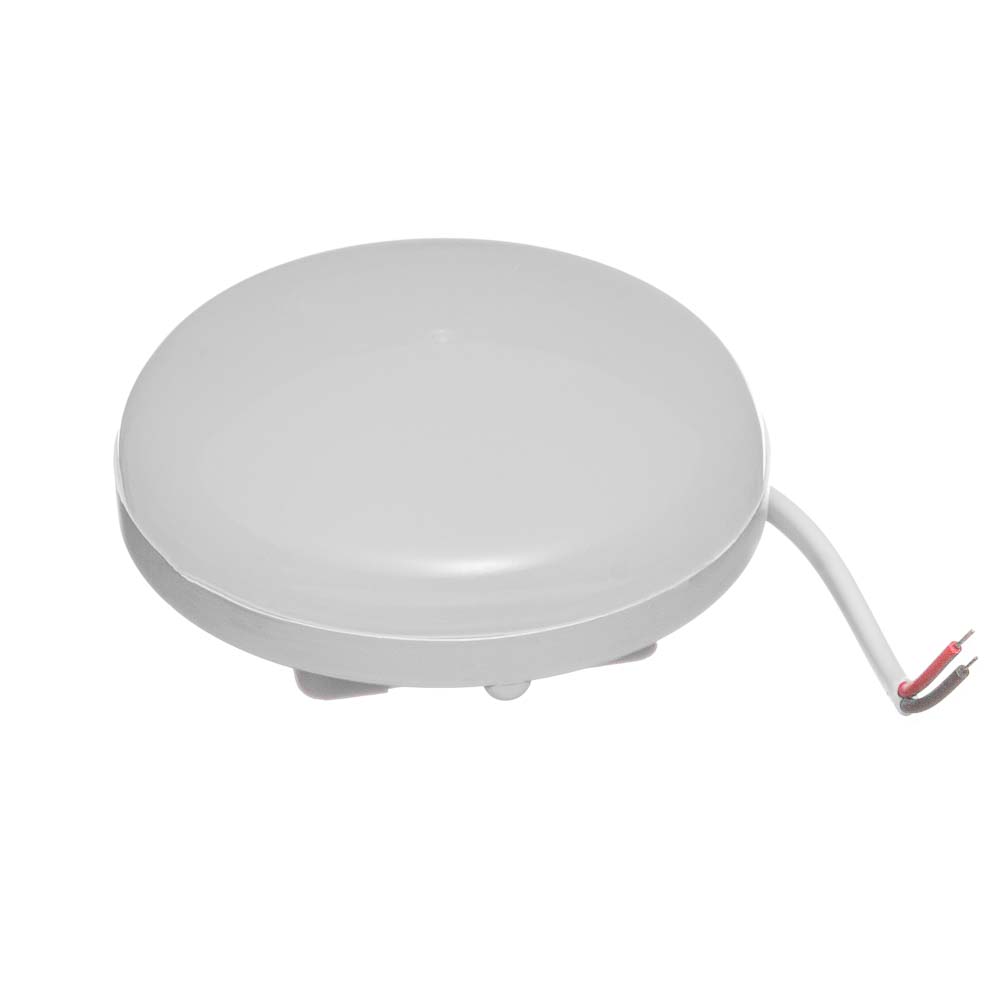 Його светорассеиватель зроблений з непрозорого білого полікарбонату. Світильник має круглу формою і простий пластиковий каркас білого кольору. Інтегрований перетворювач напруги дозволяє світлодіодному пристрою не реагувати на коливання електрики в мережі. Це забезпечує стійку і надійну роботу світильника.