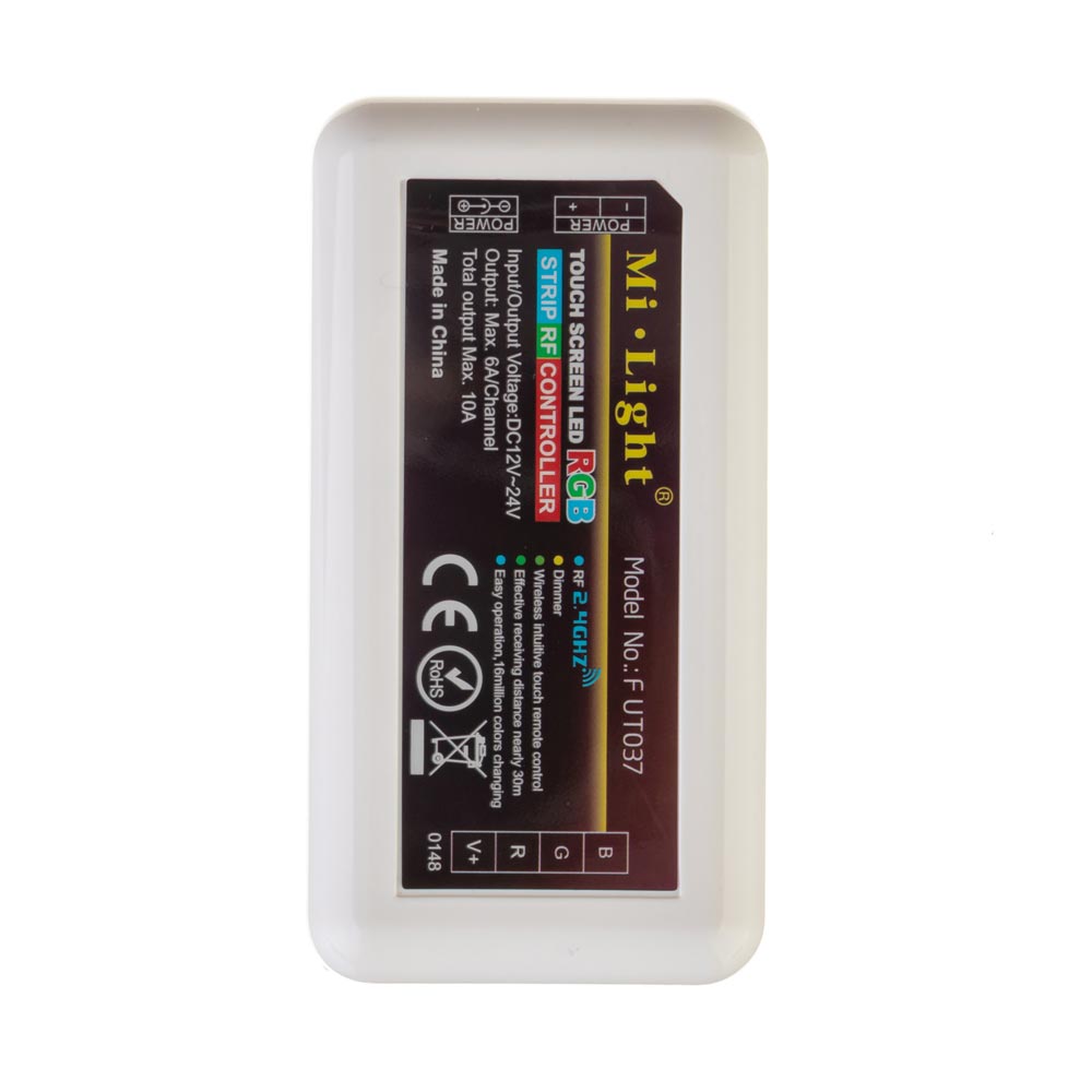 У пам’яті цього RGB контролера залишається остання програма, що застосовувалася до виключення живлення. Ви завжди зможете правильно настроювати відтінок кольору світіння за допомогою сенсорного кільця на пульті. Даний контролер йде в комплекті з сенсорним радіо пультом білого кольору. Іншими словами, даний контролер — це якісний аксесуар для регулювання кольору та режиму світіння led RGB стрічки.
