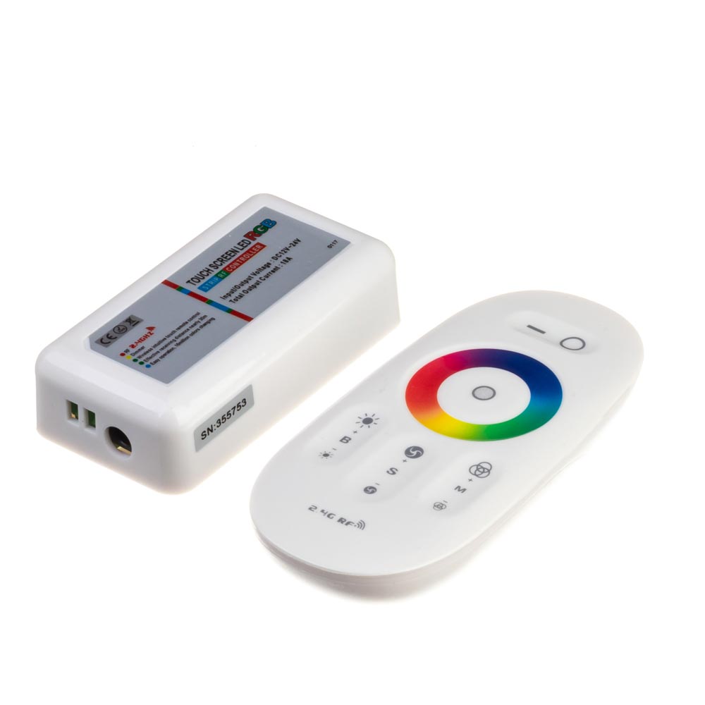У пам’яті цього RGB контролера залишається остання програма, що застосовувалася до виключення живлення. Ви завжди зможете правильно настроювати відтінок кольору світіння за допомогою сенсорного кільця на пульті. Даний контролер йде в комплекті з сенсорним радіо пультом білого кольору. Іншими словами, даний контролер — це якісний аксесуар для регулювання кольору та режиму світіння led RGB стрічки.
