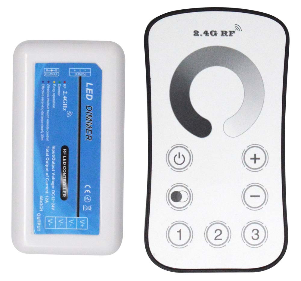Даний димер використовують для регулювання яскравості світла світлодіодної стрічки та інших освітлювальних елементів. Презентований димер має в комплекті пульт управління, який працює на радіохвилях.