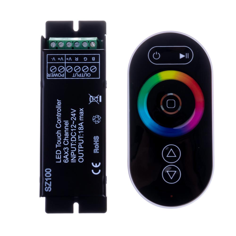 Даний диммер використовують для регулювання яскравості світла світлодіодної стрічки та інших освітлювальних елементів. Презентований диммер має в комплекті пульт управління, який працює в межах 30 метрів. Такий пульт працює на радіохвилях.