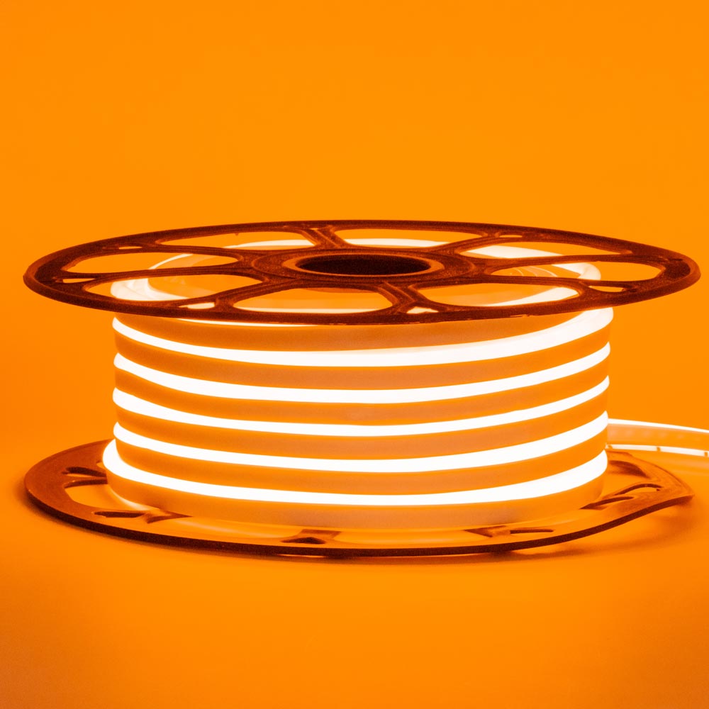 Еластичний led неон помаранчевого кольору — це плата з інстальованими на її поверхні яскравими світлодіодами, вмещенная в пвх-оболонку. Неон стійкий до перепадів температури і має можливість бути використаний в місцях, ніяк не залежать від навколишнього зовнішнього середовища.