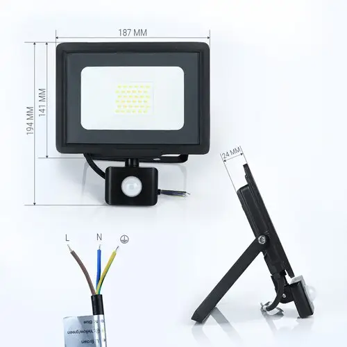 Светодиодный уличный прожектор с датчиком движения, предназначен для освещения: улиц, шоссе, промышленных зон, спортивных и детских площадок, для внутриквартального освещения жилых дворов и скверов.