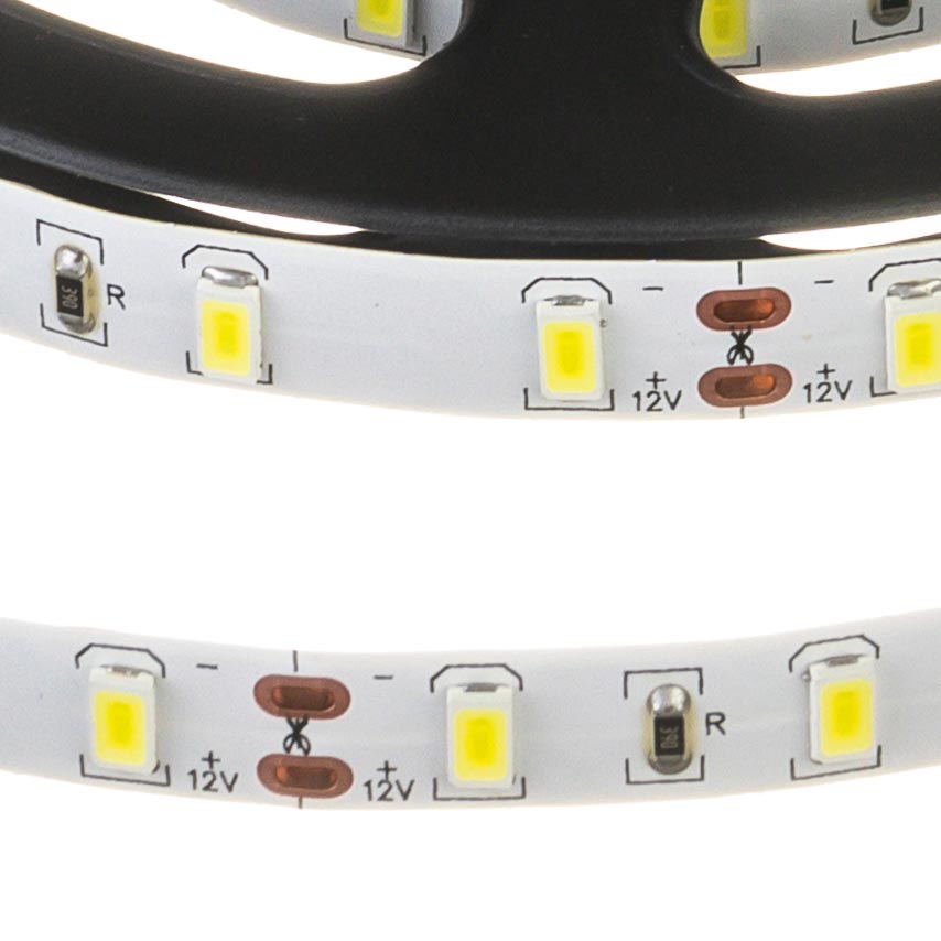 Дана led стрічка SMD 2835 12V зроблена у вигляді гнучкої друкованої плати в силіконовій водонепроникній основі. На одній стороні встановлені світлодіоди і струмообмежуючі резистори, а на іншу нанесена клейка стрічка. Силікон захищає світлодіоди від забруднень і вологи, а також від механічних ушкоджень.